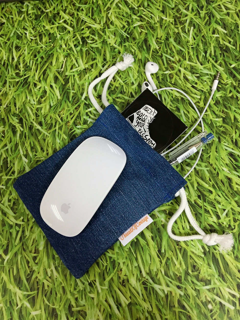 Denim Drawstring Pouch S (Medium Blue)